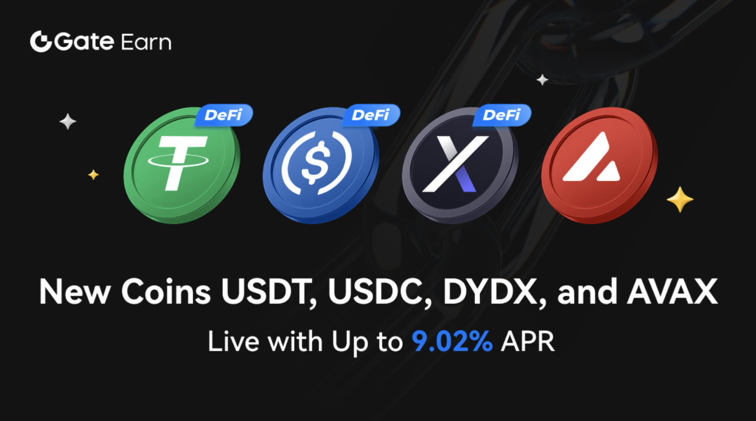Recently, Gate.io Staking is set for a major product upgrade, with the addition of four popular assets: USDT, USDC, DYDX, and AVAX. Alongside this expansion, the platform is launching exclusive bonus rewards, offering annualized yields of up to 9.02%, creating unprecedented earning opportunities for investors.