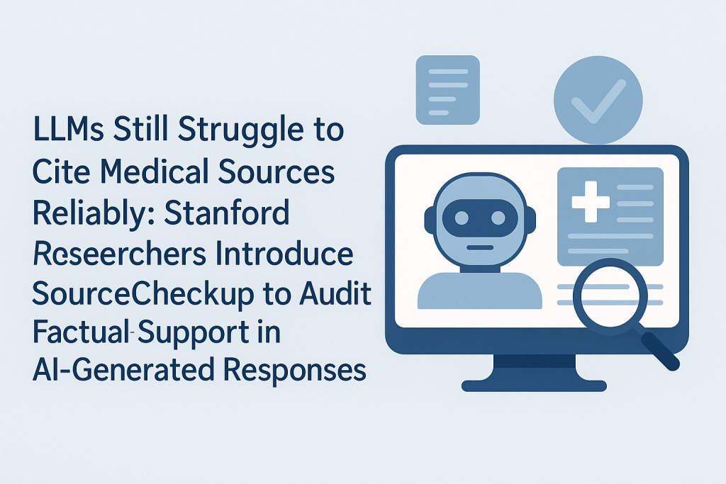 Researchers from Stanford University and other institutions have developed SourceCheckup, an automated tool designed to evaluate the accuracy with which LLMs support their medical responses with relevant sources. Analyzing 800 questions and over 58,000 source-statement pairs, they found that 50%–90 % of LLM-generated answers were not fully supported by cited sources, with GPT-4 showing unsupported claims in about 30% of cases. Even LLMs with web access struggled to provide source-backed responses consistently. Validated by medical experts, SourceCheckup revealed significant gaps in the reliability of LLM-generated references, raising critical concerns about their readiness for use in clinical decision-making.