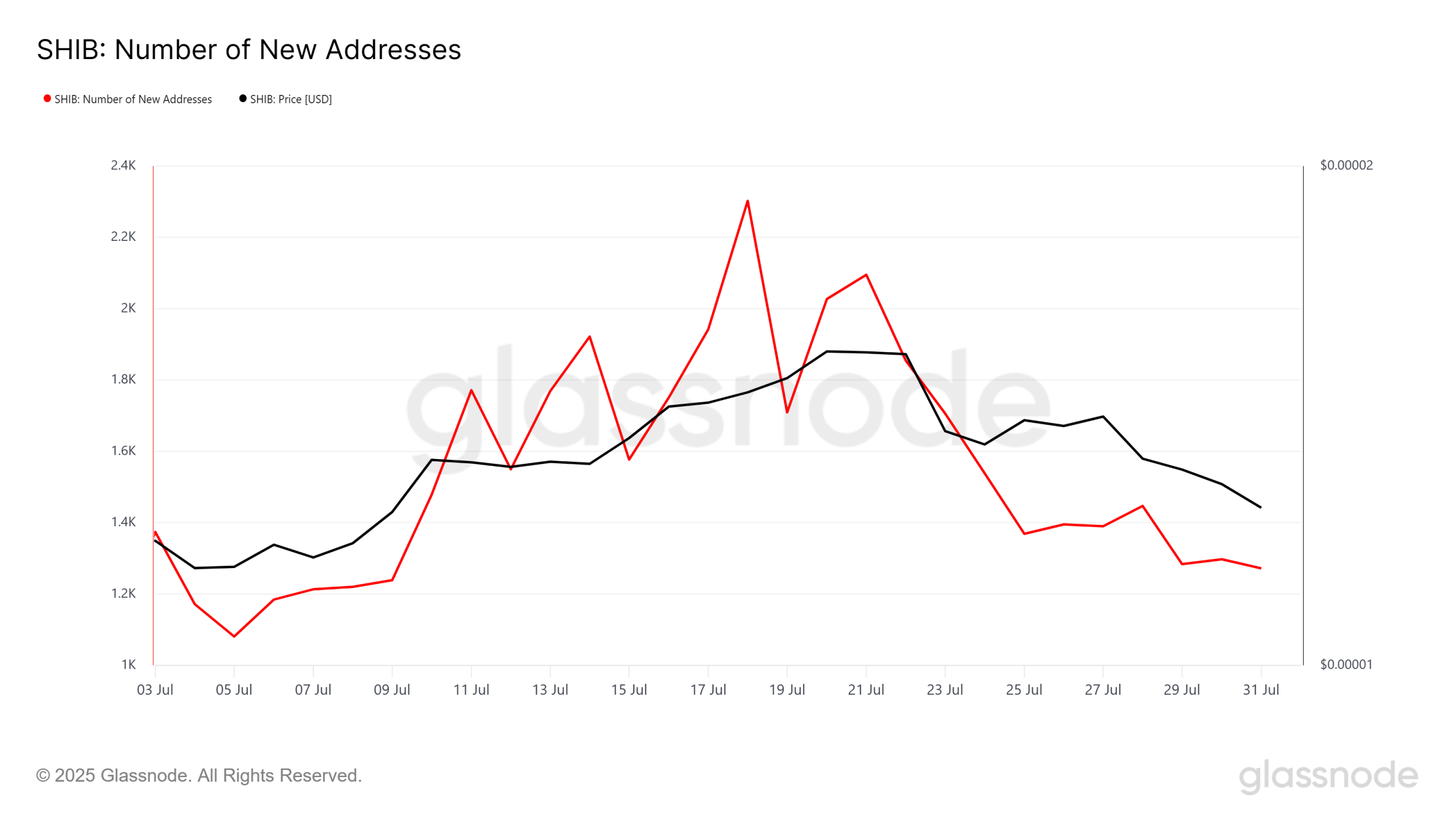 At present, Shiba Inu’s price is sitting at $0.00001210, down 21% over the last 10 days. The recent drop has been primarily driven by the sharp decline in new investors entering the market.
